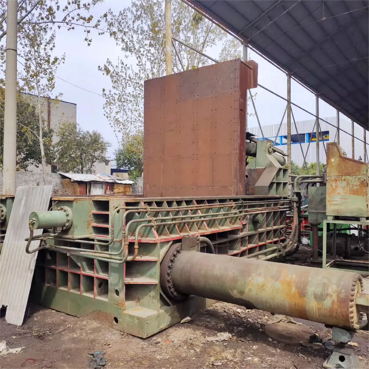- Presskopf: Der Presskopf ist dafür zuständig, den Metallschrott in kompakte Ballen zu pressen. Er übt Druck auf den Schrott aus, um ihn zu verdichten und so die Lagerung, den Transport und das Recycling zu erleichtern.