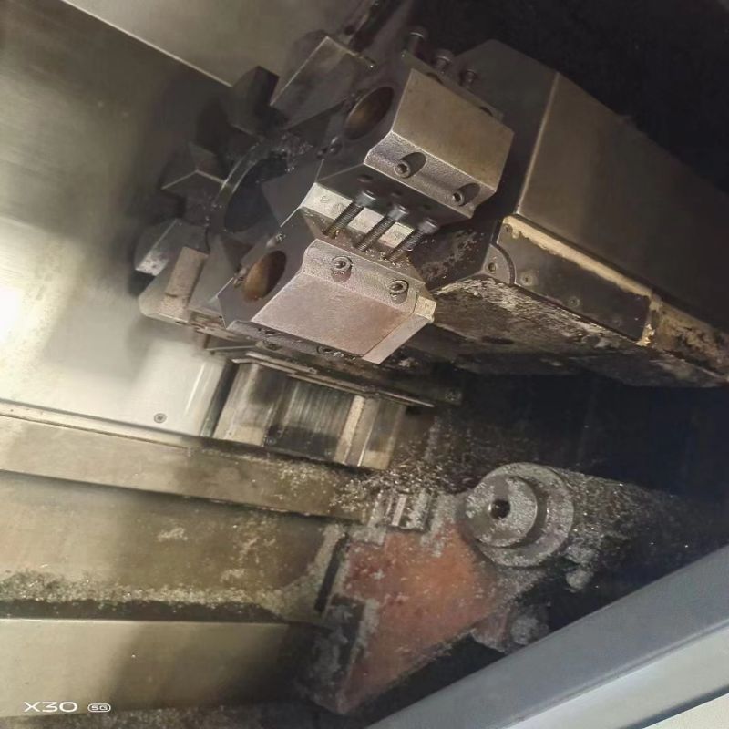 - Sistema di utensili: Il tornio è probabilmente dotato di una torretta portautensili o di un portautensili su cui possono essere montati vari utensili da taglio. Questi strumenti possono essere modificati automaticamente per eseguire diverse operazioni senza intervento manuale.