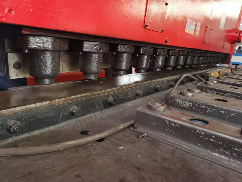 CNC guillotine shearing machine can automatically adjust its rake angle, shearing length, blade gap, and back gauge travel. There are four cutting edges on the upper and low blades. The whole frame is treated with annealing. The guillotine shearing machine uses DELEM DAC360 CNC control system from Holland and a pneumatic back material support device.