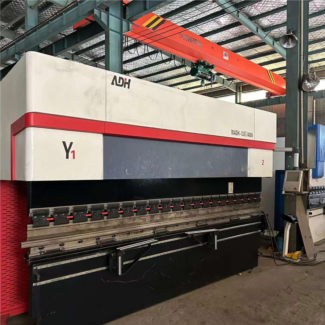 A ADH WADH135T Press Brake is a machine tool used in metalworking to bend sheet metal and plate material. It typically consists of a hydraulic or mechanical press that applies force to a piece of metal positioned on a die. The force exerted by the press causes the metal to bend at a predetermined angle.