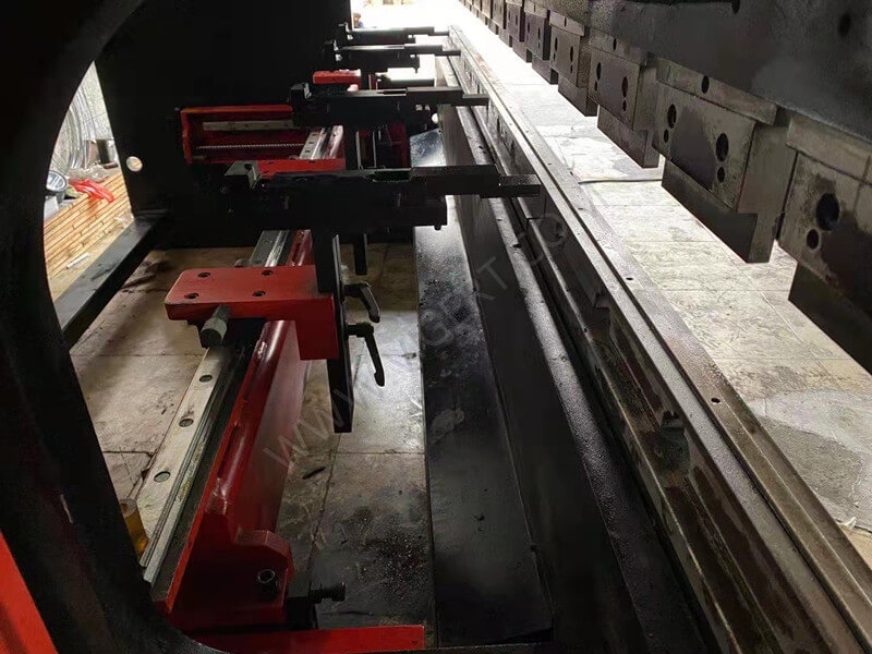 PR6 JFY press brake adopts a conventional motor as the main dynamic source of the hydraulic pump. The electric and hydraulic system controls the synchronized movement of the two oil cylinders, thus ensures high synchronized accuracy, bending accuracy, and repeat positioning accuracy. Featured with hydraulic automatic compensation system to avoid the effects on the workpiece due to the deformation of ram. The compensation is controlled by a CNC system with high accuracy. The throat deformation compensation device prevents the detection element from bending affected by the fuselage strain during the working process, which ensures the bending accuracy. The frame is assembled one time after welding, it is processed by CNC pentahedron processing center, ensuring the rigidity and processing accuracy of the frame.