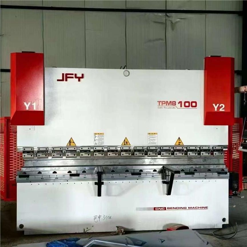 A JFY TPM8 100 Press Brake is a machine tool used in metal fabrication to bend and shape sheet metal. It operates by clamping the workpiece between a matching punch and die. The punch applies force to the workpiece, forcing it into the die and creating a bend according to the desired angle and shape.